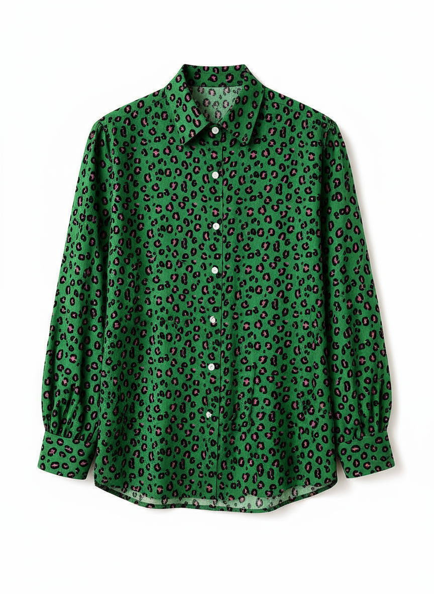 Turn heads with the Green Leopard shirt, made from 100% soft, breathable cotton for all-day comfort. The hand-drawn leopard design pops beautifully against the rich green background, making it versatile and easy to style with any outfit. Bold yet effortlessly wearable, this shirt is perfect for expressing your unique style while adding a fresh, colorful touch to your wardrobe.
