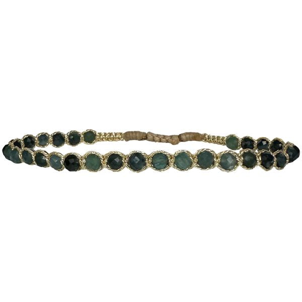 If you wish for simple elegance and versatility this bracelet is just for you. It is handwoven by our team of artisans using Hematite Stones and metallic threads.