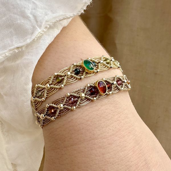 Elevate your everyday style with the Celestia Handmade Bracelet, a delicate blend of craftsmanship and natural beauty. At its heart lies a stunning natural gemstone centerpiece, chosen for its radiance and unique character. Each bracelet is handmade using artisanal macramé technique, intricately woven with shimmering metallic threads that add a touch of celestial glow.