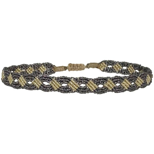 Our exquisite Breez handmade bracelet, a stunning fusion of artistry and elegance. Crafted with beautiful and high-quality metallic threads, this bracelet showcases a beautiful technique that highlights intricate patterns and textures, making it a true statement piece. Its shimmering design effortlessly complements your jewels and accessories, adding a touch of sophistication to any outfit.