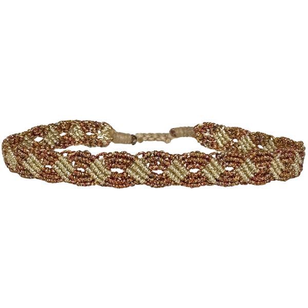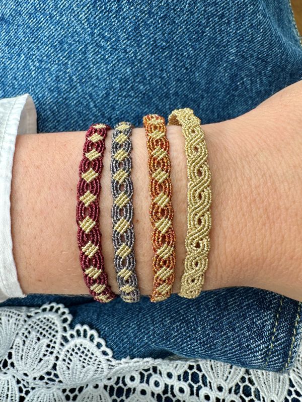 Our exquisite Breez handmade bracelet, a stunning fusion of artistry and elegance. Crafted with beautiful and high-quality metallic threads, this bracelet showcases a beautiful technique that highlights intricate patterns and textures, making it a true statement piece. Its shimmering design effortlessly complements your jewels and accessories, adding a touch of sophistication to any outfit.