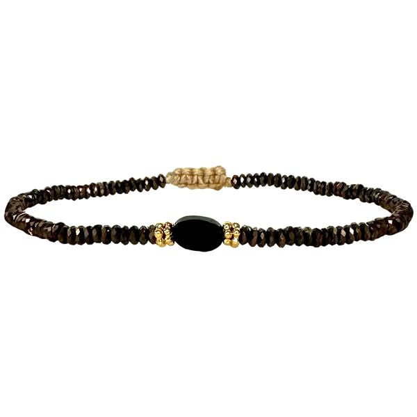 At the center of this design, the Black tourmaline stone reveals its signature iridescent flashes, adding depth and a subtle touch of mystery to the piece. Finished with elegant vermeil details, this bracelet radiates understated luxury, making it the perfect accessory for everyday wear or special occasions. Elevate your style and embrace effortless elegance with this distinctive bracelet designed to stand out.