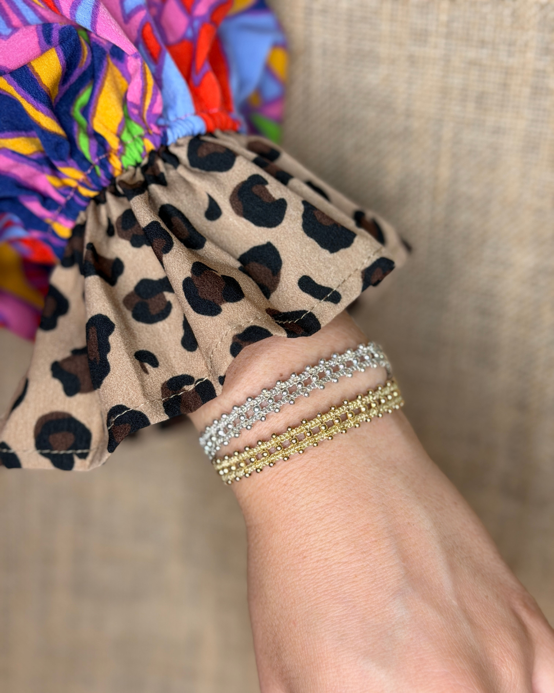 Elevate your style with the Sirena bracelet, a handmade masterpiece crafted with metallic threads and shimmering metal beads from end to end. Available in gold and silver, this bracelet is a bold statement piece on its own, yet versatile enough to layer with other favorites for a personalized look. Perfect for adding a touch of shine and sophistication to any outfit, the Sirena bracelet is your new go-to for effortless elegance.
